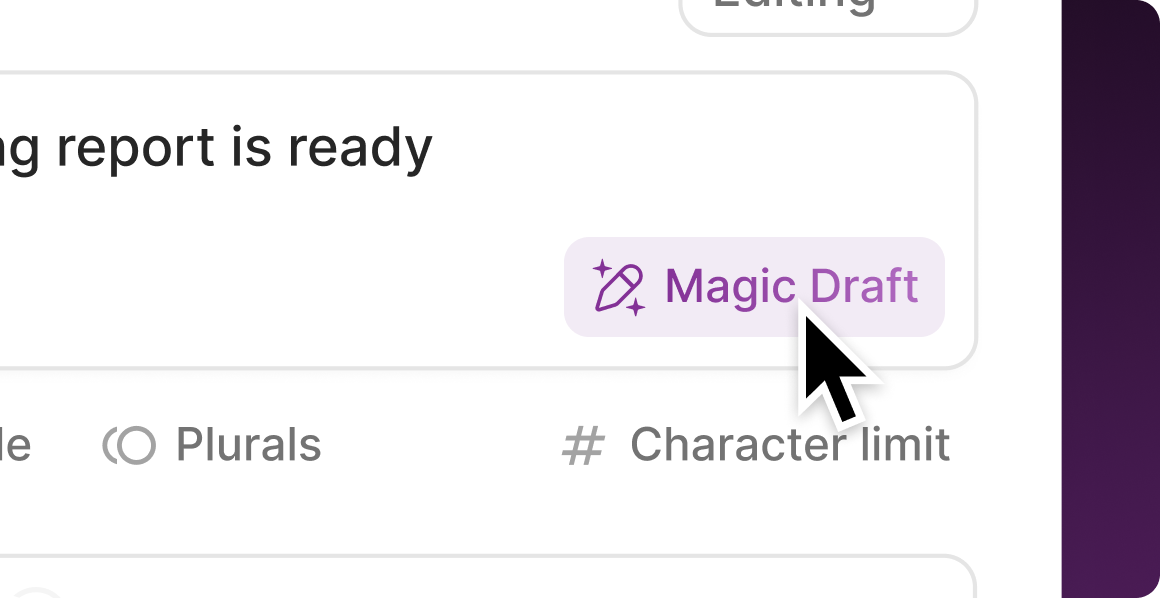 - Write an error modal (or any other UI element) in seconds. Stop staring at an empty state wondering what your error copy should say. Select the text layer, click Magic Draft, and get a first draft that already matches your voice, tone, and legal language. Refine from there.