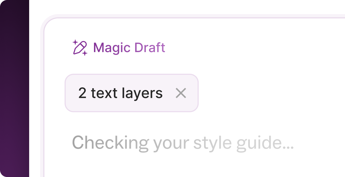 Magic Draft is Ditto's generative AI tool, built to draft product copy inside your designs. Turn placeholder copy into first drafts with just a click, written with only the context you've built out in Ditto. Write better first drafts, faster, while you reinforce your copy system — all without leaving Figma.
