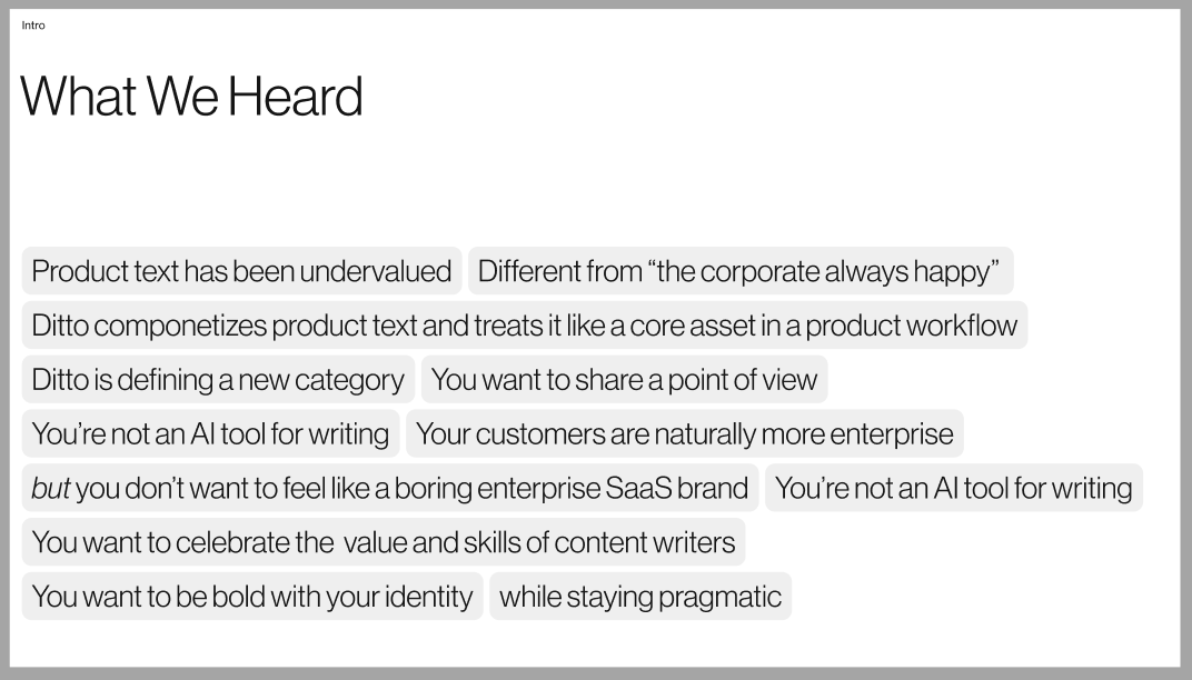 - We knew that words had to be at the center of Ditto’s brand — because words are what matter most.
