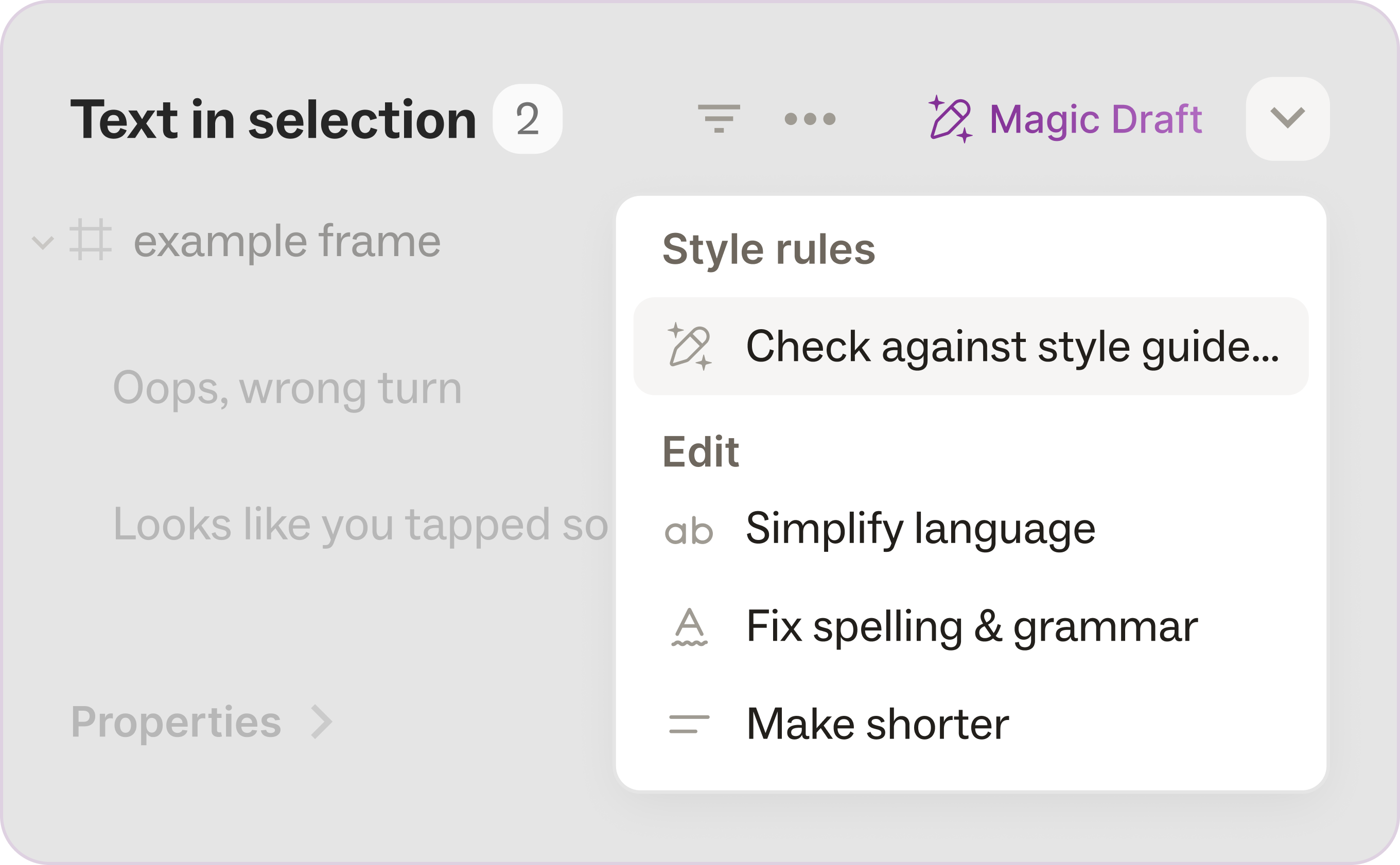 Ditto’s Github PR review bot analyzes user-facing text in new pull requests and suggests edits. Suggested edits are based on the style guide stored in Ditto and identification of opportunities to reuse existing text. This will work regardless of if the text in the pull request is hardcoded. Accepting the suggestion commits the change directly to the branch.